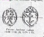 Hans sigill finns bevarat från 1570 då han för två korslagda kors samt initialerna P.A. Och från 1579 då han för ett ankare (Lika sonen) samt initialer.